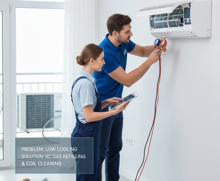 Cooling Failure & Gas Refilling: Expert diagnosis of cooling loss, including professional and safe refrigerant gas refilling to restore optimal temperature.