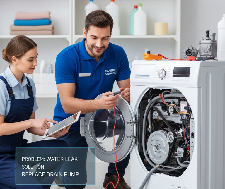 Water Leaks: Expert diagnosis and repair of pump failures, hose replacements, and drainage issues.